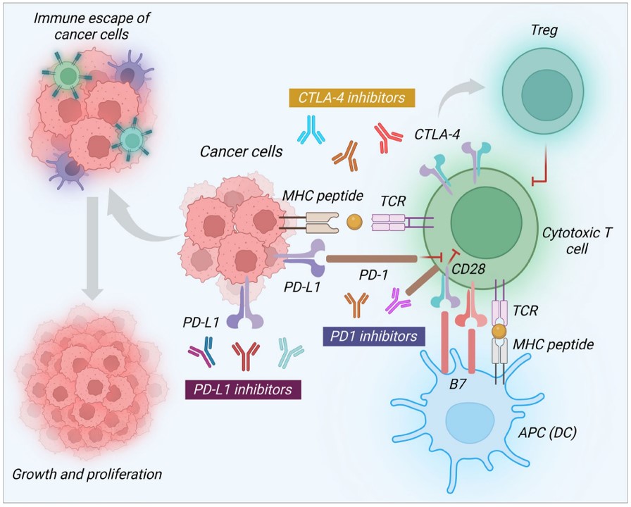 - Lahiri, Aritraa, et al. "Lung cancer immunotherapy: progress, pitfalls, and promises." Molecular cancer 22.1 (2023): 40. Distributed under Open Access license CC BY 4.0. The image was modified by extracting and using only Part B of the original image.